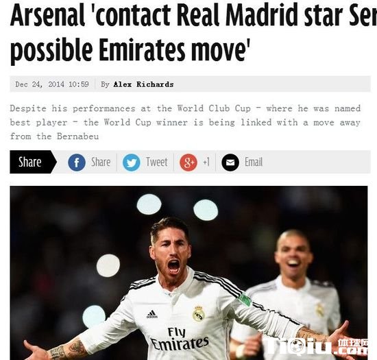 国际足球 时间:2014-12-25 10:24来源:未知编辑:小北【导读】北京时间2014年12月25日消息,英媒《每日镜报》近日透露,英超豪门阿森纳已经盯上了皇马阵中大将拉莫斯,温格希望趁拉莫斯续约陷入僵局的机会签下这名西班牙国脚,而目前阿森纳主帅已经同拉莫斯的经纪人哥哥雷内取得了联系。