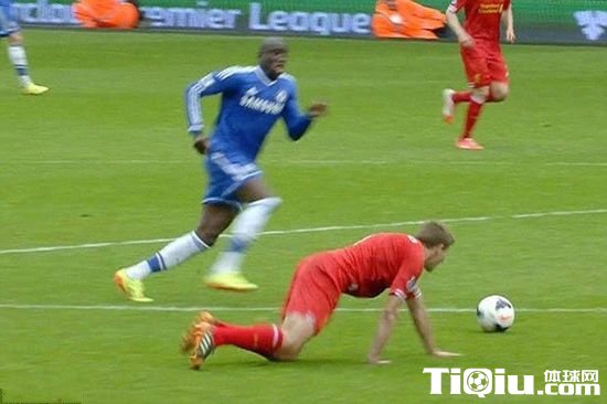 上赛季杰拉德在利物浦主场输给切尔西的联赛中意外滑倒,乌龙助攻登巴巴破门。红军最终功亏一篑,把英超冠军拱手送给了曼城,屈居第二。当时切尔西球迷毫不留情,他们高唱:“杰拉德,他x的一屁股坐地上,把球传给了登巴巴。”