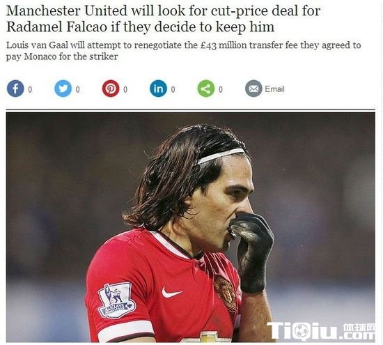 去年夏天,曼联花费600万欧元租借费得到法尔考,并且为其开出了265000英镑的超高周薪。但法尔考迄今的表现,与他的身价和薪酬并不匹配。《每日电讯报》指出,就算曼联赛季结束后决定买断法尔考,但并不想按照去年夏天谈好的4300万英镑买断。