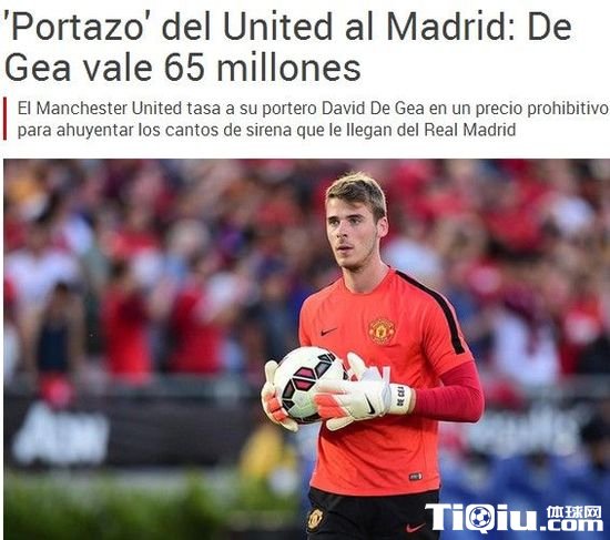 国际足球 时间:2015-01-21 11:07来源:未知编辑:小北【导读】北京时间2015年1月21日消息,尽管卡西近期状态回勇,但考虑到他即将34岁,而纳瓦斯的表现并不出彩,皇马显然还需要收购一名顶级门将。皇马最想要得到的,就是德赫亚。一来德赫亚是西班牙人,而且是国家队中的卡西接班人,二来德赫亚出身于马竞青训营,他的加盟可以被视为皇马对马竞的打击。但曼联可不想要轻易放走头号门将,据《每日体育报》报道称,曼联为德赫亚标价5000万英镑(约合6500万欧元)!