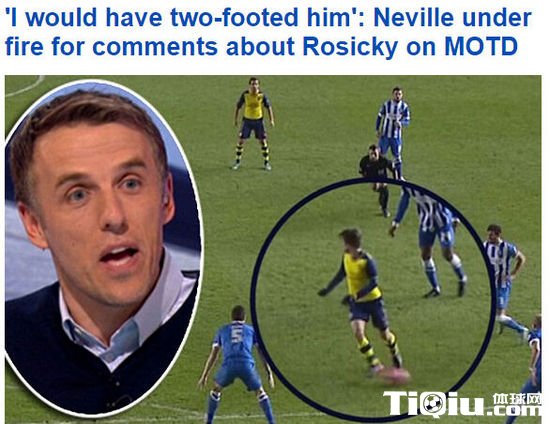 在阿森纳3-2击败布莱顿的足总杯比赛中,菲尔-内维尔关于罗西基“声东击西”传球的指责引发了争论,当时他表示:“如果在训练中有球员这样传球,我会第一个赶过去双脚飞铲他,或者把他踢出比赛。如果有人在训练中这样对我,耍我,我会立马给他颜色看,狠狠教训他一顿。”