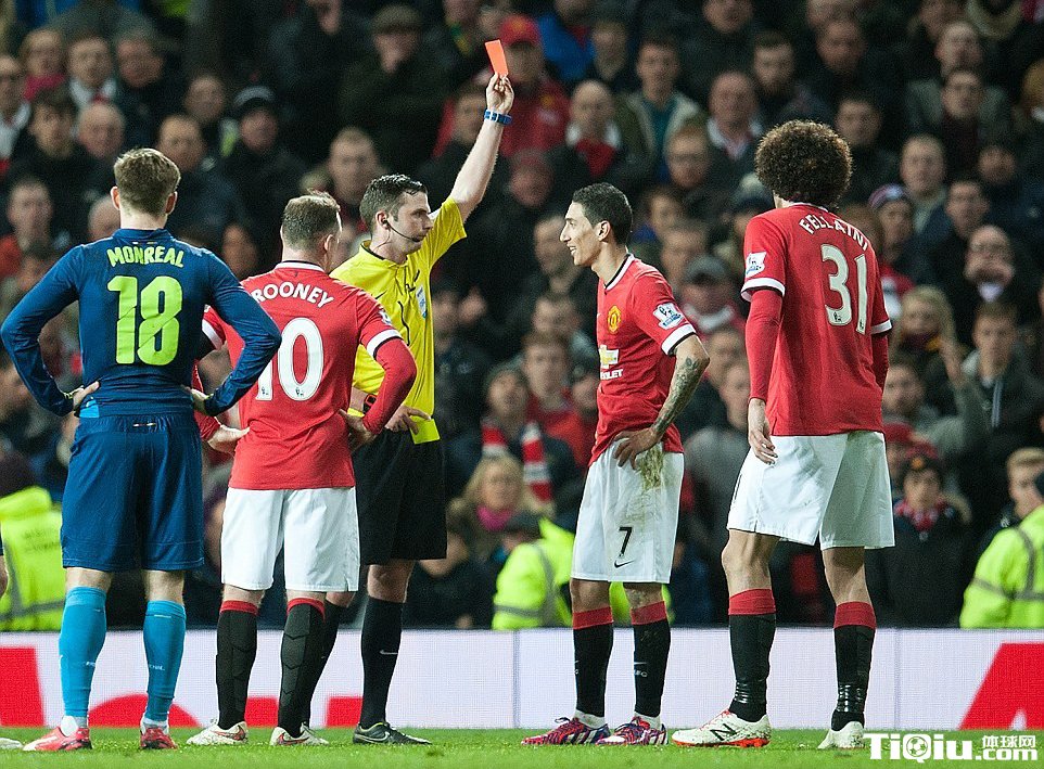 国际足球 时间:2015-03-11 11:34来源:未知编辑:小北【导读】北京时间2015年3月11日消息,在这轮的足总杯赛事中,曼联可谓是输球又输人,球队1-2不敌阿森纳被淘汰出局,队中大将迪马利亚还吃到了红牌。不过好消息就是,天使不会因为自己的红牌而被追加处罚多场,他的禁赛场次只有一场,即本周末对阵热刺的联赛。