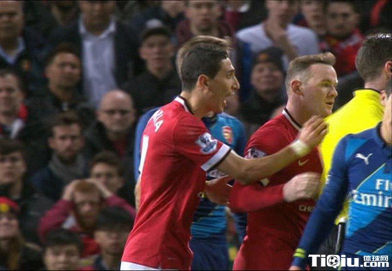 本场比赛迪马利亚传中助攻鲁尼扳平比分后,因假摔被主裁判迈克尔-奥利弗出示黄牌,不满的天使在身后拉拽奥利弗衣服抗议,结果被出示第二张黄牌,两黄变一红下场。