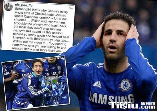 尽管如此,在社交网络上,何塞-马里奥扔不余余力的扞卫着蓝军中场:“法布雷加斯可能无法出场,或者达不到大家的预期,但至少他在不停地战斗,而且发挥出自己的特点,我看到过糟糕的切尔西球迷,但周日的那些人我见过的最糟糕的,球迷起哄嘲讽法布雷加斯,他们简直就是耻辱!”