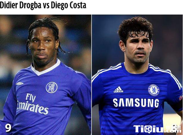 两个球员的球风相似,德罗巴18场首发打入10球;科斯塔则打入19球。