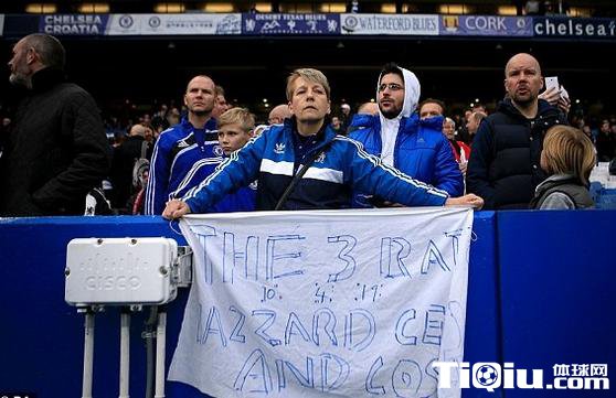 在看台上,一副球迷标语格外醒目,上写:“那三只老鼠:阿扎尔、塞斯克、科斯塔”,这令人回想起穆帅在任时所说的“队内有内鬼”。显然,切尔西的球迷宁愿相信穆帅,而将狂人被解雇后的愤怒情绪,发泄到了传闻中的那些叛逆球员身上。对阿扎尔、小法等人来说,在接下来的一段时间内,他们将在这样的阴影下踢球,而唯一能让球迷的愤怒情绪被淡化甚至淡忘的,只有表现和成绩。