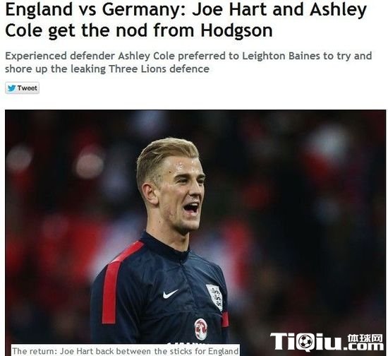 本赛季哈特的表现只能用“糟糕”来形容,在俱乐部和国家队都失误频频,最近在曼城被佩莱格里尼打入冷宫,现在也危及到国家的地位,在英格兰同智利的友谊赛上,霍奇森安排福斯特镇守龙门,不过福斯特也没能守住球门,被桑切斯洞入两球。好在霍奇森没彻底放弃哈特,星期日镜报》披露,受人瞩目的英德大战,老帅将重新起用哈特。