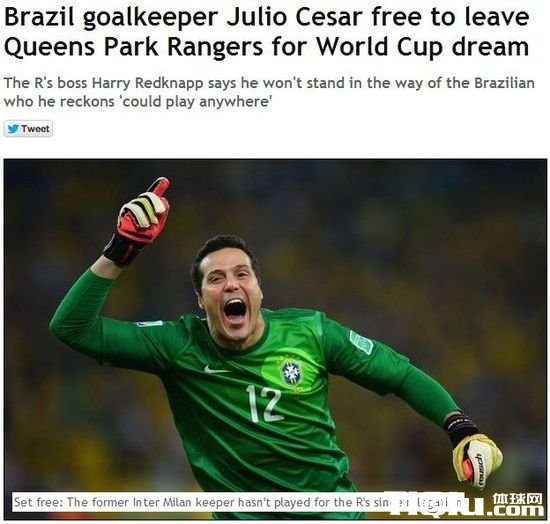 国际足球 时间:2013-11-20 16:27来源:http://gjzq.tiqiu.com编辑:小伍哥【导读】QPR主帅雷德克纳普昨晚宣布,为了不影响巴西国门塞萨尔的世界杯梦,他们将会让他在明年1月以自由身离开俱乐部。英超的曼城和意甲的佛罗伦萨都对这位巴西人感兴趣。