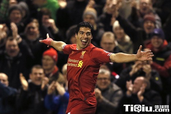国际足球 时间:2013-12-05 13:23来源:http://gjzq.tiqiu.com编辑:小伍哥【导读】北京时间12月5日凌晨03点45分,2013-14赛季英超第14轮,利物浦坐镇安菲尔德球场迎战诺维奇。此役完成变成苏亚雷斯的专场,上半场乌拉圭人就完成帽子戏法,下半场任意球直接破门,又助攻斯特林破门。最终凭借着全能战神苏亚雷斯的大四喜,利物浦主场5-1大胜“金丝雀”诺维奇,稳居积分榜第4位。