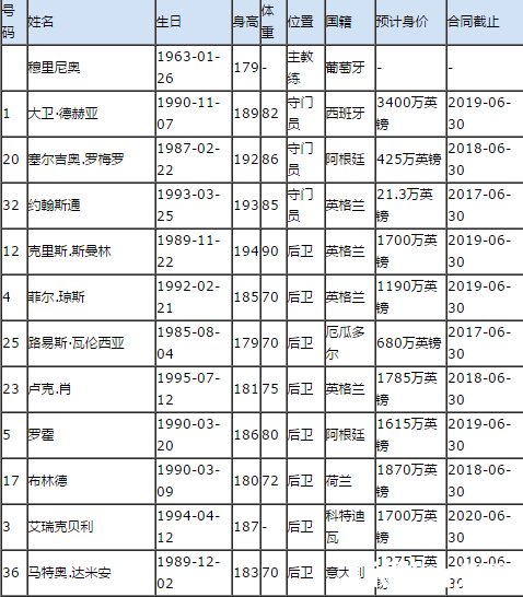 2016-2017曼联最新阵容 曼联最新阵容一览